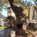 Coffee and tea making equipment are available in an equipped kitchenette that also features a fridge, a toaster, and an oven The villa is just off Cafe Grill Platanos, offering dishes of Mediterranean cuisine.